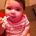 I just wanted to share a photo that was taken while mommy and I were out to dinner with Aunt Danee. She say’s I am her favorite neice =)