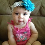 Today I am 7 months old! A few days ago I went to a doctor $& I was a little over 16lbs & 26.5 inches long. I love my sippy cup, fight my naps, walk all over the place in my walker & I’m up on my hands & knees rocking back & forth. Mommy hopes I crawl soon! I love being around my family but miss Nolan.