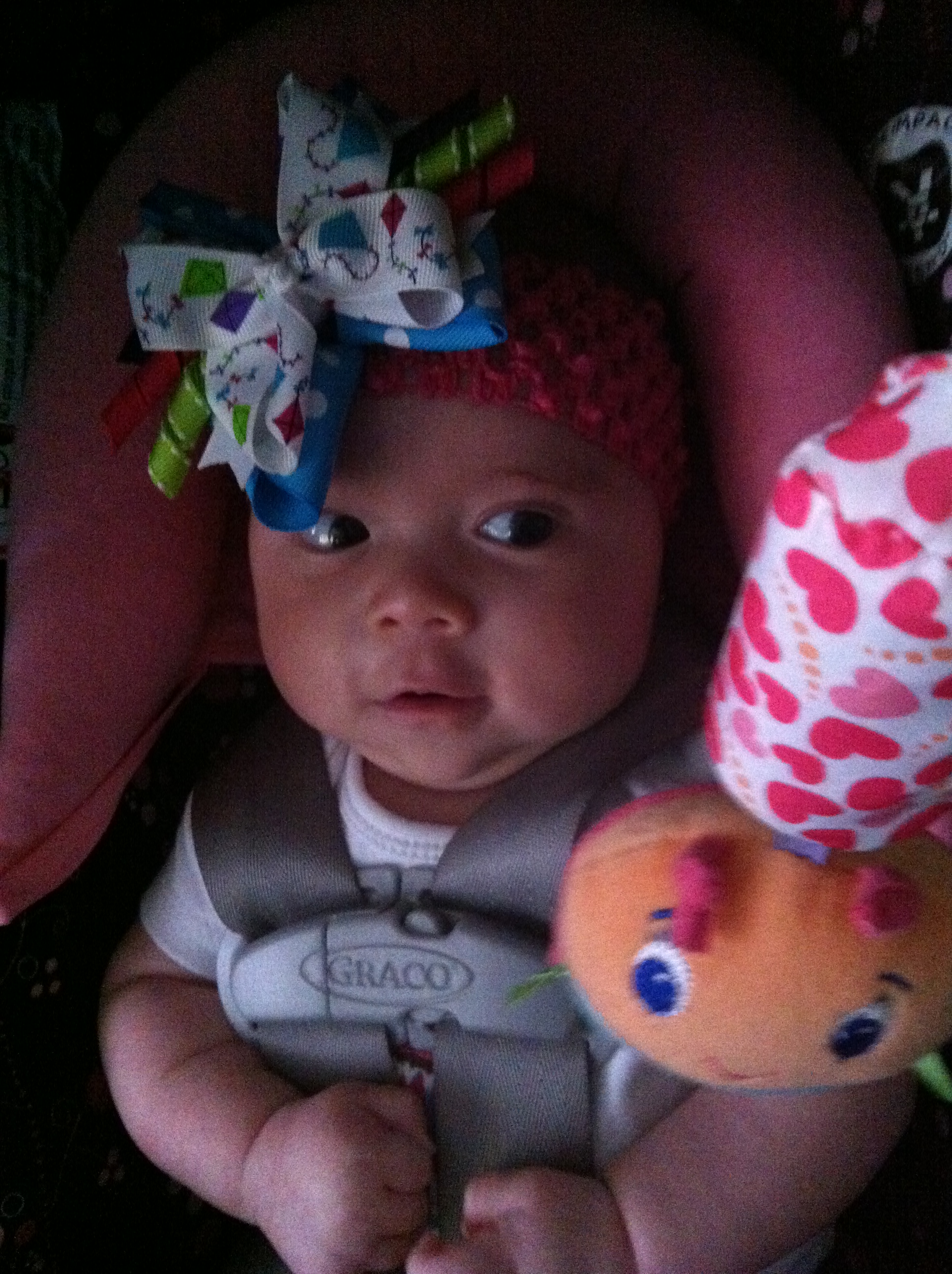 Cuddle time with mommy! Noticed my toy!